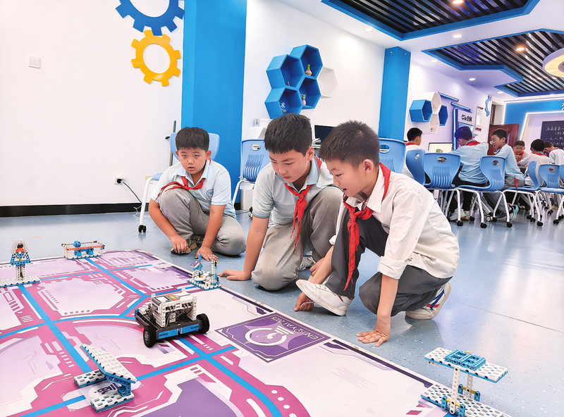 9月24日,洛南县第二小学创客社团的学生在进行智能机器人测试。旋转、伸展,机器人按照程序圆满完成了各项任务。“太棒了!成功了!”9月24日,在洛南县第二小学创客社团教室,谢明鉊等三名同学围着智能机器人开心地说。