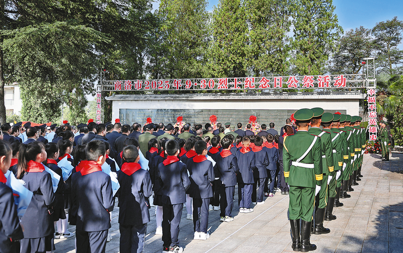 9月30日,商洛市2025年烈士纪念日公祭活动在市烈 士陵园举行。 (本报记者 李 敏 摄)本报讯 (记者 李 敏)9月30日,商洛市2025年烈士纪念日公祭活动在市烈士陵园举行,深切缅怀革命先烈的历史功绩,激励全市广大干部群众传承英烈精神、汲取奋进力量,为加快打造“一都四区”、推进富民强市,奋力谱写商洛高质量发展、现代化建设新篇章而不懈奋斗。