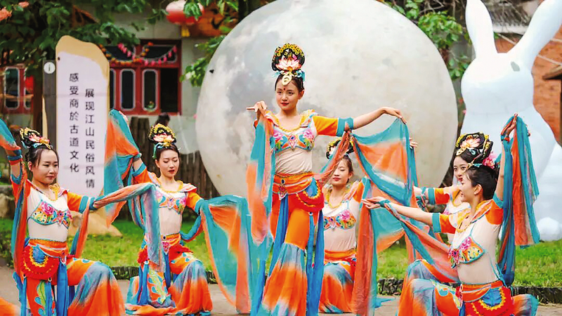 ◁山阳漫川古镇民俗展演引得阵阵喝彩。国庆中秋喜相逢,我市处处洋溢着节日的喜庆。围绕“文旅惠民、欢乐双节”主题,全市整合资源,精心策划推出文艺演出、民俗体验、非遗展示、旅游推广等各类文旅活动99项共577场,并设计3条秋季精品线路及多项惠民政策,为广大游客提供了丰富多元的假日选择。尽管部分景区受连续降雨影响临时关闭或调整活动,全市旅游市场依然人气不减、秩序井然,展现出较强的消费潜力与发展活力。