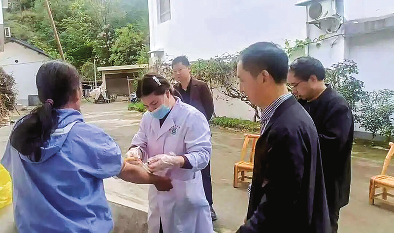 10月10日是第34个世界精神卫生日,今年的宣传主题是“人人享有心理健康服务”。为切实做好严重精神障碍患者健康管理服务,10月9日,山阳县法官镇卫生院组织家庭医生签约服务团队,深入辖区各村户开展严重精神障碍患者入户随访评估及上门体检服务。(本报通讯员 杨枝烨 摄)
