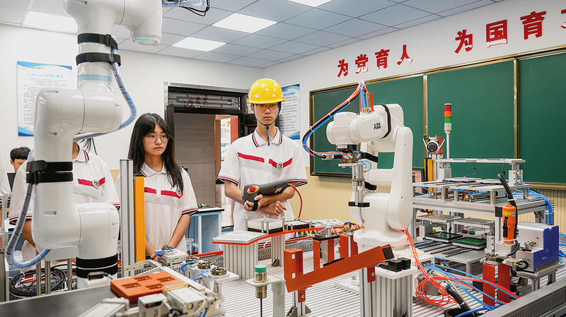 镇安县职教中心学生正在学习机械自动化生产操作。教育、科技、人才是中国式现代化的基础性、战略性支撑。今年以来,镇安县深入实施创新驱动发展战略,着力打好“教育科技人才体制机制一体改革”硬仗,紧扣科教协同育人、产学研用融合、科技成果转移转化,推动创新链、产业链、资金链、人才链深度融合,打造县域经济社会高质量发展“强引擎”。