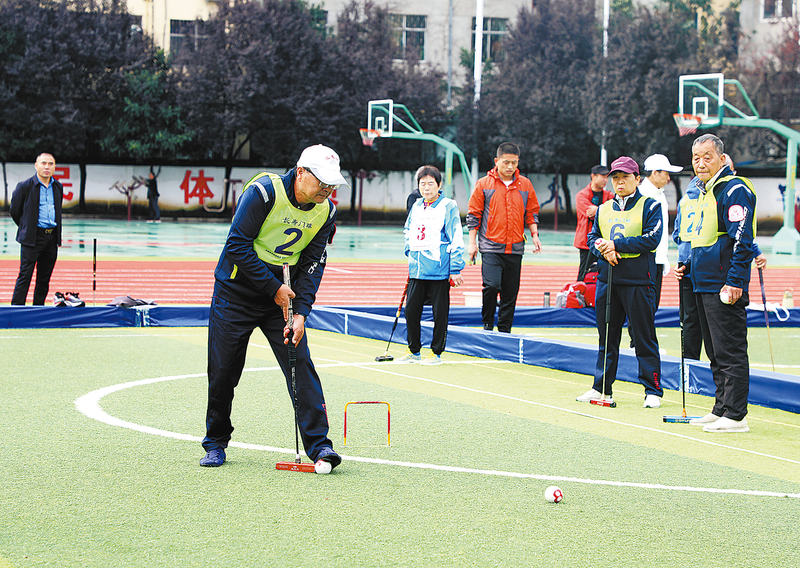 10月14日,“全民健身 运动三秦”陕西省第五届全民健身运动会暨陕西省第四届老年人体育健身大会门球比赛在商南县闭幕,来自全省各地市的9支代表队,各显风采,经过角逐,最终西安队获得一等奖,咸阳、商洛、榆林队获得二等奖,延安、渭南、铜川、安康队获得三等奖。 (本报记者 胡 蝶 摄)