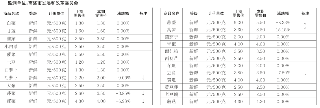 商洛市蔬菜农批市场价格监测情况(2025-10-14)