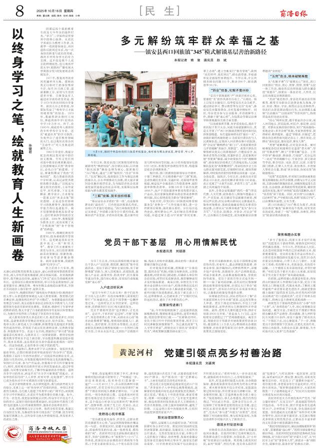 今年以来,镇安县西口回族镇坚持和发展新时代“枫桥经验”,结合辖区实际,以升级“阳光说事”解纷品牌为核心,创新推行“345”模式,通过“三联”强组织、“四会”夯基石、“五用”解民忧,找准信访工作与基层治理的融合点,以小举措推动大治理,将大量矛盾纠纷化解在萌芽状态,为当地经济社会高质量发展营造稳定的社会环境,实现基层治理效能与群众满意度双提升。