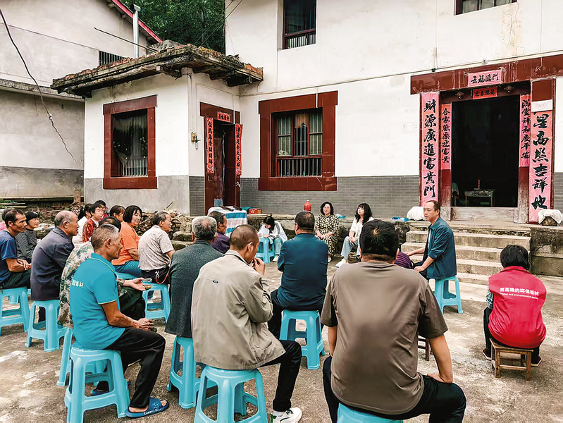 9月9日,镇村干部在岭沟村二组召开院落会,面对面与群众讲政策、聊家常、听心声、解难题。本报记者 南 玺 通讯员 赵 斌
