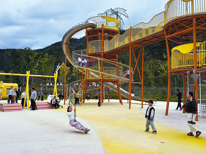 国庆假期后,丹凤县棣花镇葡萄星球游乐场延续“免门票”福利,作为丹凤本地特色文旅IP,此项举措激活本地游市场,成为家庭周末出行的热门选择。图为十月十九日,许多家长带着孩子在游乐场里玩耍。(本报记者 谢非 摄)