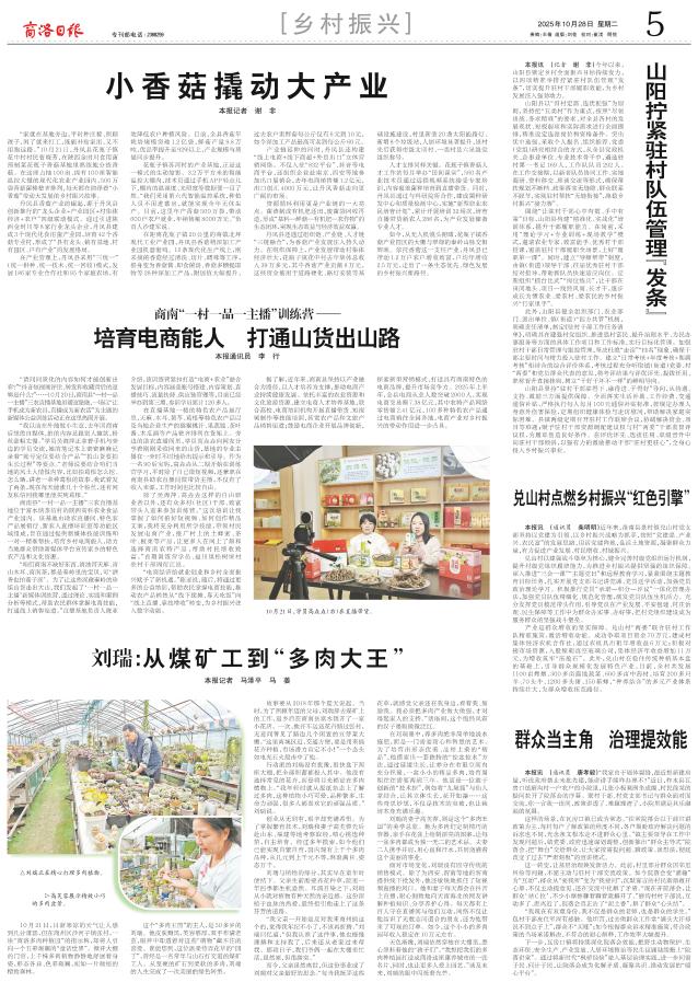 本报讯 (通讯员 柴明明)近年来,洛南县景村镇兑山村党支部坚持以党建为引领,以乡村振兴战略为抓手,按照“党建强、产业兴、农民富”的发展思路,用活党建阵地,盘活土地资源,凝聚群众力量,有力促进产业发展、村民增收、村域振兴。