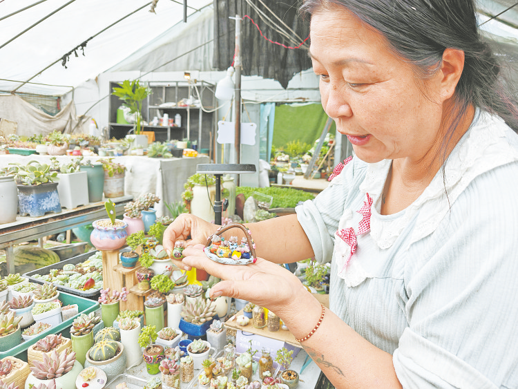 刘瑞的妻子高芙蓉,则是这个“多肉王国”的美学总监。她为多肉们定制精巧的容器,亲手在花盆上绘制漂亮的图案,让每一盆多肉都成为独一无二的艺术品。夫妻二人携手并肩,用心血和汗水,共同浇灌着这个美丽的事业。