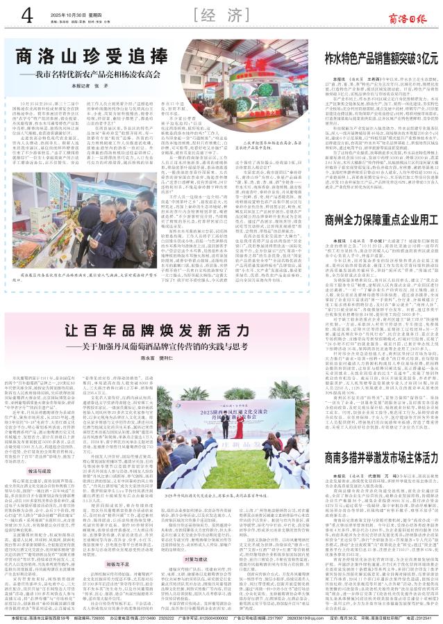 本报讯 (通讯员 王希西)今年以来,柞水县立足生态禀赋,以“菌、药、畜、果、茶”特色产业为主攻方向,区域化布局,规模化发展,打造特色产业集群,激活区域发展动能。目前,特色产品销售额突破3亿元,实现品牌价值与市场效益双向提升。