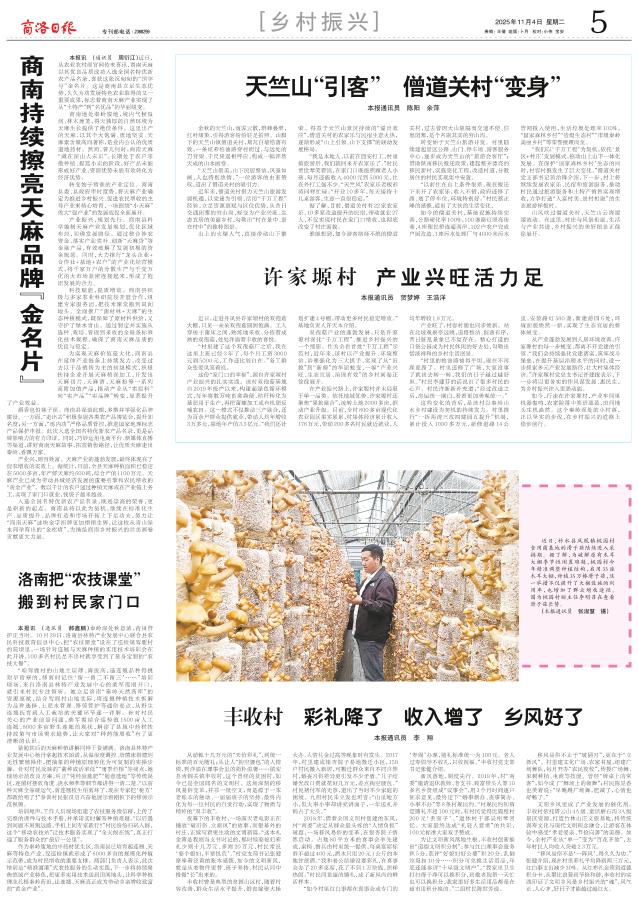 本报讯 (通讯员 郝鑫鹏)秦岭深处秋意浓,药田管护正当时。10月29日,洛南县林特产业发展中心联合县农民科技教育信息中心,把“农技课堂”设在了巡检镇驾鹿村的院坝里,一场针对连翘与天麻种植的实用技术培训会在此开讲,100多名村民足不出村就享受到了量身定制的“农技大餐”。