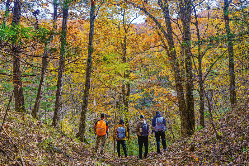 丹凤县峦庄镇的老林沟,是徒步爱好者的天堂。沿着蜿蜒的山路前行,沟里高耸入云的树木呈现出红、黄、绿等多种颜色,与远山构成了一幅立体的秋日图景,让人不由得感叹大自然的神奇。