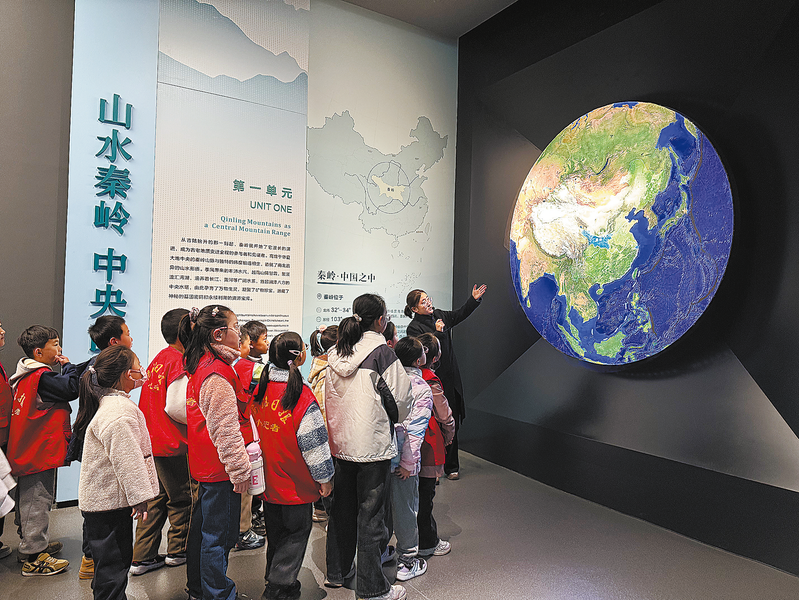 当天9时许,小记者们跟随讲解员张家欣步入“和合南北泽被天下——中国秦岭文化展”展厅。该展览分为“山水秦岭、中央山脉”“厚重秦岭、中华祖脉”“守护秦岭、永续根脉”3个单元,系统呈现了秦岭的地质演化、自然风貌、矿产资源以及5000年文明史与生态保护历程等内容。面对大屏幕中巍峨壮丽的秦岭山脉影像,小记者们不由发出阵阵惊叹,感受着大自然的磅礴与神奇。
