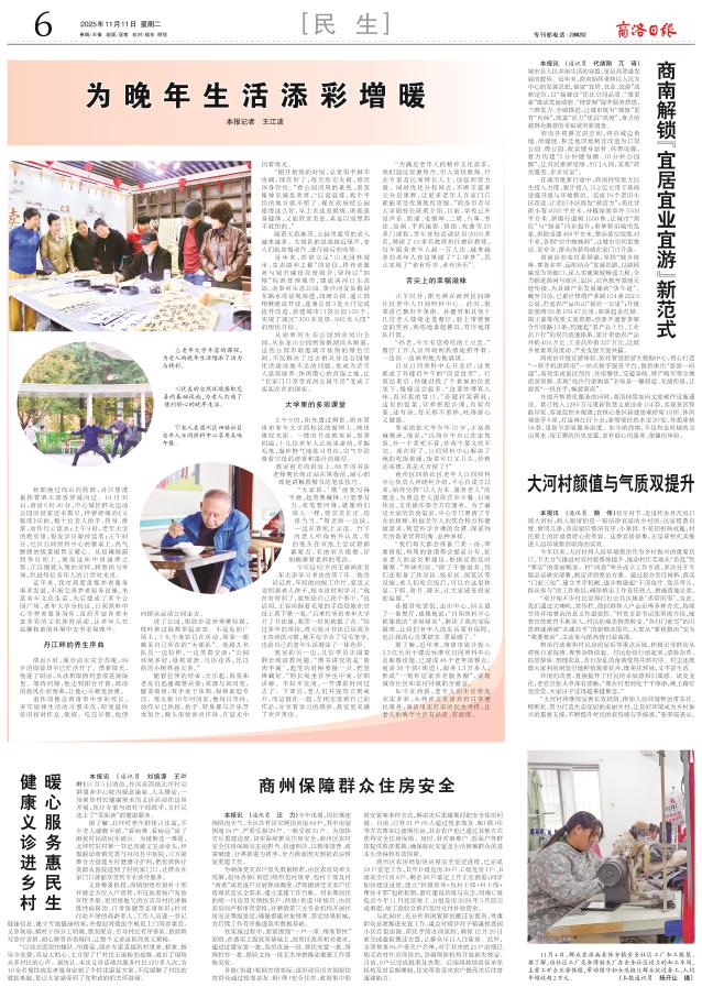 秋阳漫过商山的轮廓,丹江碧波裹挟着草木清香穿城而过。10月30日,清晨6时30分,中心城区群众运动公园的晨雾还未散尽,伴着舒缓的《太极韵》乐曲,数十位老人抬手、转身、推掌,动作行云流水;上午9时,老年大学的教室里,银发学员凝神运笔;正午时分,社区日间照料中心的餐桌上,热气腾腾的饭菜暖胃又暖心。从晨曦微露到华灯初上,商洛这座中国康养之都,正以细致入微的关怀,将悠闲与幸福,织进每位老年人的日常时光里。