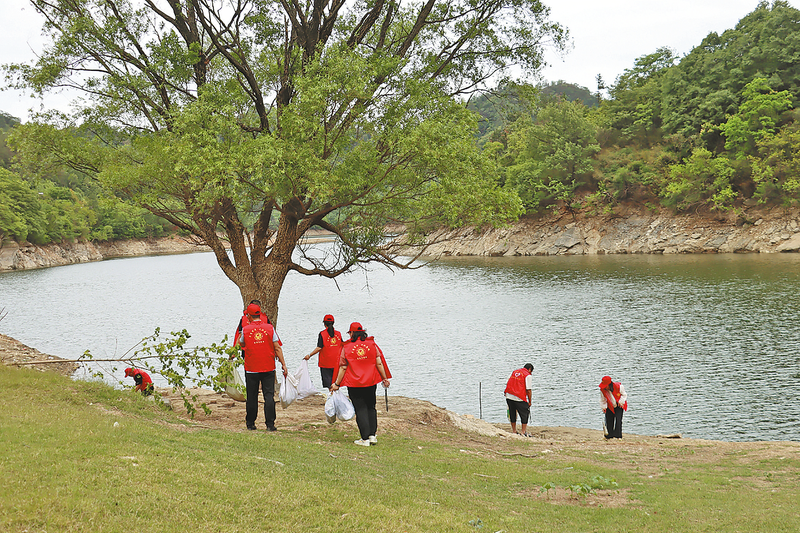 △10月15日,商南县环保志愿者在县河水库开展清洁行动,用实际行动守护水源地生态安全。