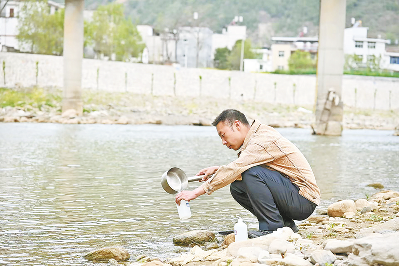 ▷11月9日,商南县环境监测站采样员王子铭在丹江(商南县过风楼段)进行水质采样,严把水质安全关。丹江作为南水北调中线工程重要水源涵养地与输水通道,蜿蜒流经商南县89.5公里,流域面积1743平方公里,是商南人民的“母亲河”。近年来,商南县锚定“水质稳定达标、生态持续向好”目标,多措并举筑牢丹江源头生态屏障,让一江清水既滋养境内百姓,又助力商南牢牢守住南水北调陕西商洛出境生态防线。