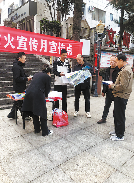 11月以来,柞水县各镇(街道)、村组及县森林防灭火指挥部工作人员采取宣传车、村(社区)广播、无人机空中宣传等方式,在全县开展森林防火宣传,营造出浓厚的森林防火宣传氛围。图为11月12日县林业局工作人员向群众发放防火宣传单。(本报通讯员 舒宗锋 摄)
