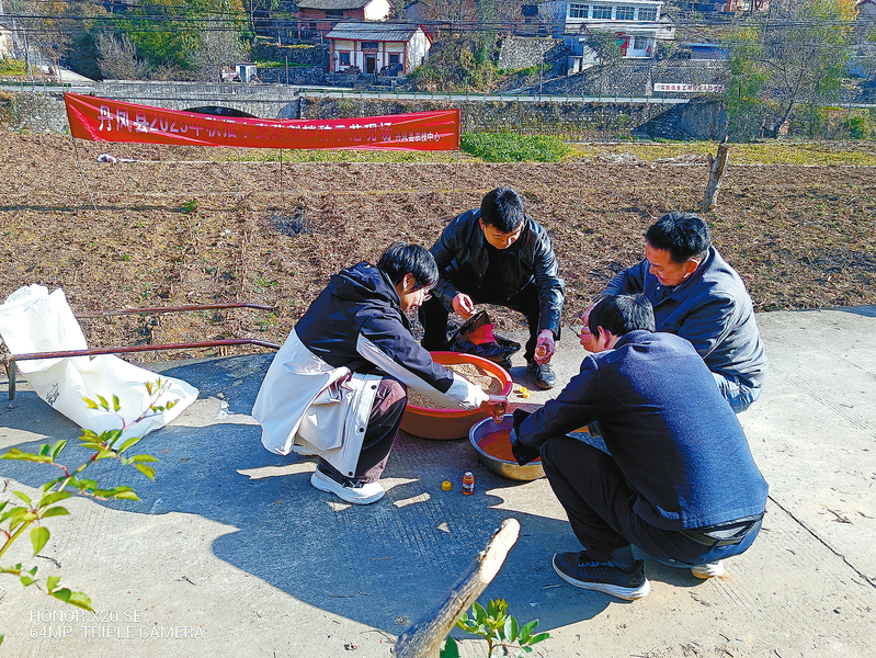 为抢抓冬小麦播种黄金期,近日,丹凤县农技中心技术团队到竹林关镇光明村开展小麦种植现场指导。专家们聚焦抗湿播种、药剂拌种及合理密植等关键技术,通过田间示范与答疑,帮助农户应对阴雨天气影响,助力夏粮丰收。(本报通讯员 王 磊 摄)