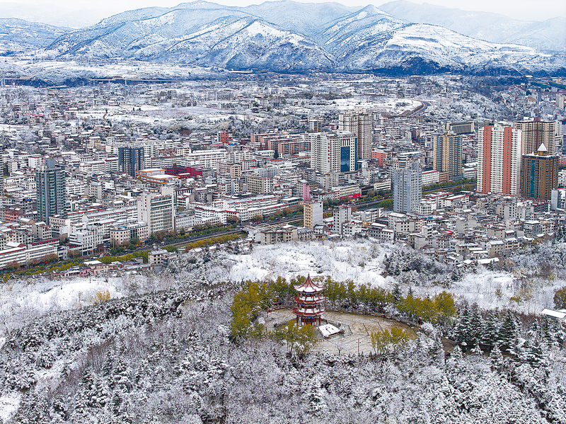 洛南城区在冬雪覆盖下,增添了几分古朴雅致与静谧诗意。