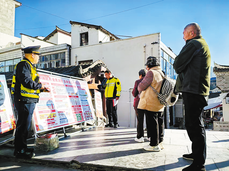 11月18日,省路政执法总队第十支队六大队联合商漫分公司凤凰路产养护管理中心、柞水县凤凰镇人民政府,在凤凰镇街道共同开展以“全民消防、生命至上——安全用火用电”为主题的消防宣传活动。活动通过摆放消防安全知识展板、向过往群众及沿线商户发放宣传彩页等形式,普及家庭用火用电规范、初期火灾扑救方法及火场逃生自救等基本常识。 (本报通讯员 宁 智 摄)