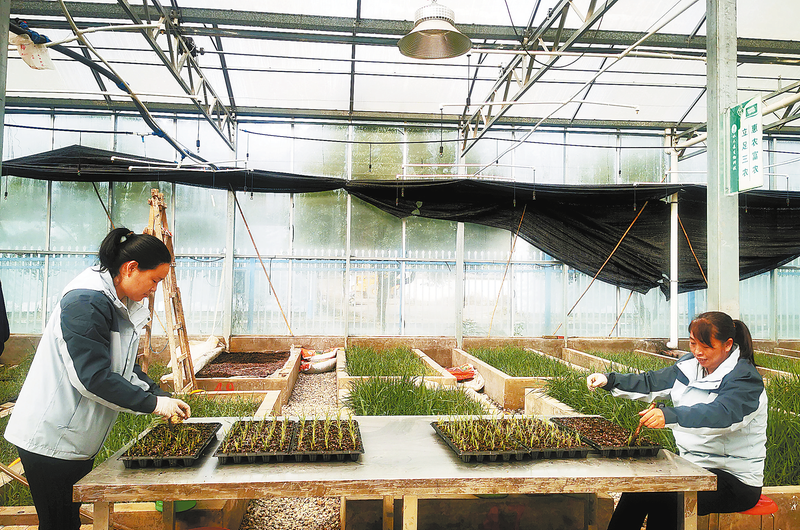 11月25日,工人正在陕西水木森生物科技有限公司育苗大棚内培育纤竹草幼苗。该公司位于商南县城关街道张家岗工业园区,年可繁育纤竹草种苗5000万株,营业收入2亿元以上,带动百余人就业、千余户农户增收,初步形成“一草一产业、一苗一生态”的示范效应。 (本报记者 肖 莲 摄)