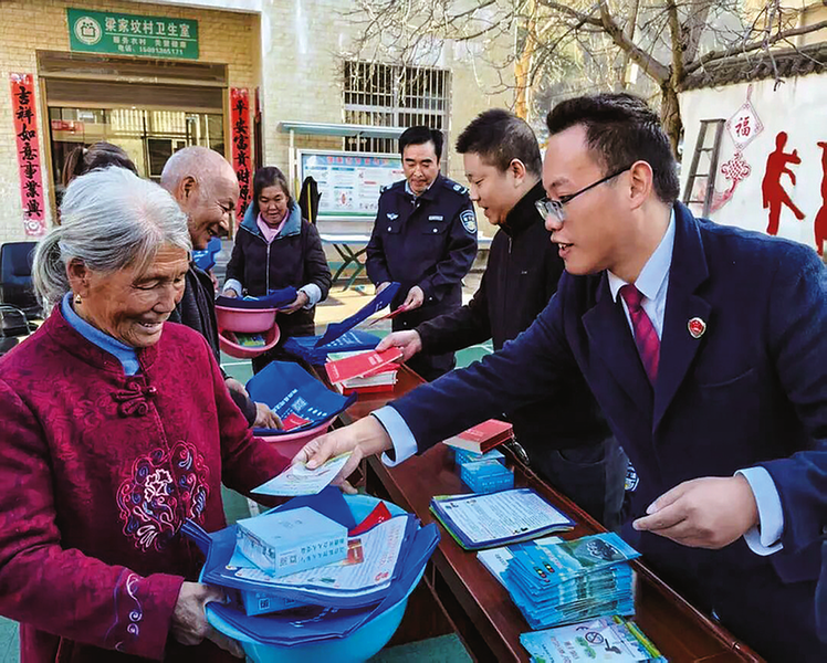 11月25日,商南县检察院干警深入十里坪镇开展平安建设集中宣传活动,通过讲解案例警示、法律知识,发放法律知识手册、检察主题宣传纸巾等形式,向过往村民和商户普及法律知识。 (本报通讯员 吴 京 摄)