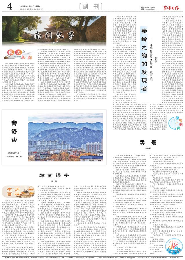 我曾说李育善的《山里的事》写的是“好人好事好乡亲”,而这部《商山草医录》则可以看作是《山里的事》的“升级版”。他写的不仅是“好人好事好乡亲”,而且是山里有“一技之长”或有深厚民间文化背景的“中药草医人”“中药采药人”“中药炮制人”等。书中有“穿越时空的王家成”“他说王家成”“我遇见的乡间草医人”“我遇见的山里采药人”“商山里的中草药”等10多个部分,聚焦这一人物群体,作者对商山洛水大地上的民间草医人、中医人和采药人等70多人进行了随机采访,客观真实地再现了他们生活的前世今生,记录了他们在民间行走和寻药治病的经历。这些人是秦岭文化的承载者和传播者,是秦岭的魂魄。李育善发现了这些人,就发现了秦岭之魂。或者说有了这些人,秦岭才更加巍峨,更加生动,更加深不可测。