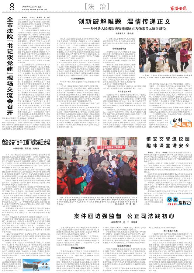 近日,商南县人民检察院组织干警走进金丝峡镇及15个村(社区)开展平安创建法治宣传活动。活动现场,检察干警通过悬挂横幅、发放宣传手册、以案释法等方式,向群众讲解邻里纠纷调解、婚姻家庭权益保护、电信网络诈骗防范、未成年人权益保障等法律知识,引导群众主动学法用法,自觉成为平安创建的参与者、推动者和受益者。 (本报通讯员 王 彦 摄)