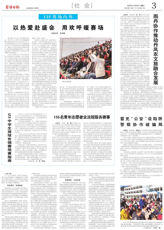 赛场边,一抹抹忙碌的志愿者身影,同样温暖了整个赛场。他们热情引导座位、解答疑问,为外国友人提供翻译服务,成为一道温暖的风景线。“能参与这样的国际赛事志愿服务,我感到非常荣幸。”商洛学院学生志愿者说,看到世界各地青少年在商洛收获快乐与成长,看到市民如此热情,一切辛苦都值得。此外,赛场周边医疗点、饮水站、志愿服务岗一应俱全,细致周到的保障让观赛体验更加舒心。