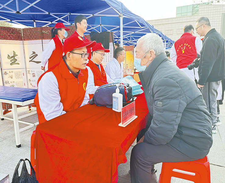12月5日,由市委社会工作部、商南县委主办,商南县委社会工作部承办的以“汇聚志愿力量、共建美好社会”为主题的2025年国际志愿者日活动在商南县举行。图为健康义诊区域,医疗机构工作人员为居民提供血压血糖检测、健康咨询等服务。 (本报记者 党率航 摄)