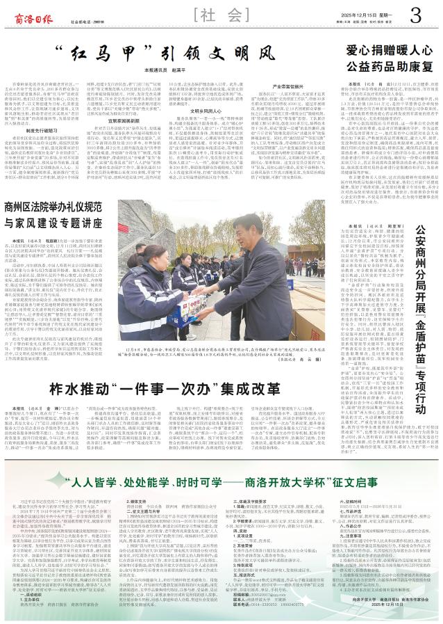 在秦岭深处的丹凤县商镇老君社区,一支由8名骨干党员牵头、200多名群众参与的党员志愿者服务队,身着“红马甲”活跃在街巷田间,他们以党建引领为核心,以民生服务为抓手,以文明创建为目标,扎实推进移风易俗工作,让陈规陋习逐步退场,文明新风落地生根,推动老君社区实现从“老旧散”到“和美新”的高质量转型,为基层治理注入强劲动力。