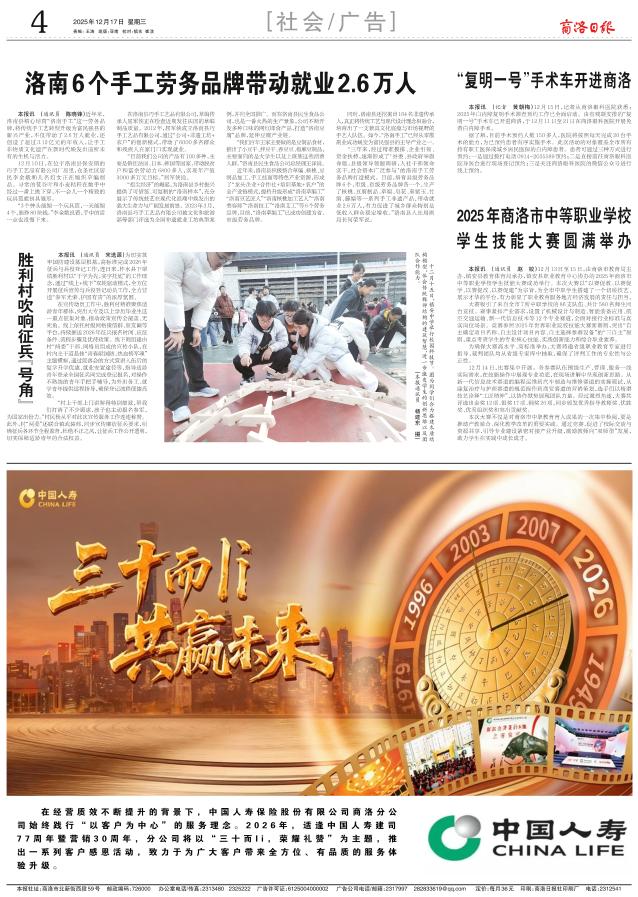 本报讯 (记者 黄朝梅)12月15日,记者从商洛眼科医院获悉:2025年白内障复明手术筛查预约工作已全面启动。由省残联安排的“复明一号”手术车已开进商洛,于12月11日至21日在商洛眼科医院开展免费白内障手术。