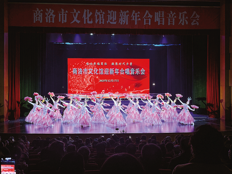 12月17日,商洛市文化馆迎新年合唱音乐会在商洛文化艺术中心大剧院隆重举行。群众文艺工作者、中小学学生和社区群众代表等800多人一起观看演出。此次音乐会旨在推动全民艺术普及,丰富群众精神文化生活。 (本报记者 王孝竹 摄)