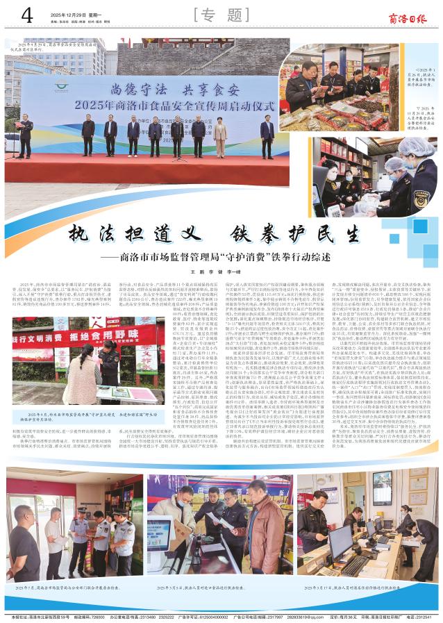 未来,商洛市市场监管局将持续以“服务民生、护航消费”为指引,聚焦食品药品安全、消费品质量、虚假宣传、价格欺诈等群众关切问题,严厉打击各类违法行为,推动行业规范发展,为商洛高质量发展和现代化建设贡献市场监管力量。