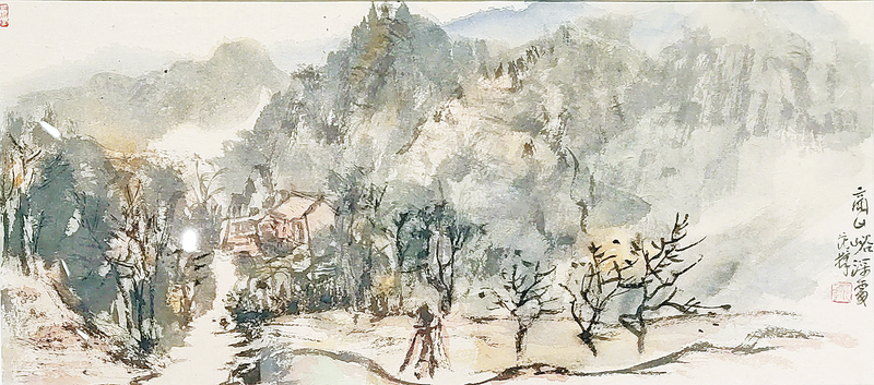 山高水长(国画) 吴 锋 作2025年12月30日,诗词里的商洛之“诗路商洛·山河入画”商洛市秋冬季美术写生作品展在秦岭博物馆开展。本次作品展是“诗词里的商洛”主题实践活动的品牌深化和创新升华,旨在通过深挖“商於古道”、长江黄河“双大河文明”的历史文化底蕴,借助创新性的现代表达和多元化的实践载体,让沉淀在古籍中的文字活起来,让流传在山水间的诗意走出来,成为活化文化传承、彰显城市魅力、增强文化自信的强劲引擎。从诗词里的吟诵,到画卷中的描绘,艺术家们循着诗句的索引,深入秦岭腹地、丹江之畔、仓颉故里与乡村阡陌,一幅幅作品,画的是商洛的绿水青山,绘的是时代的发展变迁。本次展览将持续到2026年1月8日,本报选取展出的部分作品刊发,以飨读者。