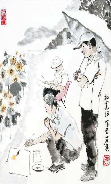 武关段湾 鱼嘴写生(国画) 候丹锋 作
