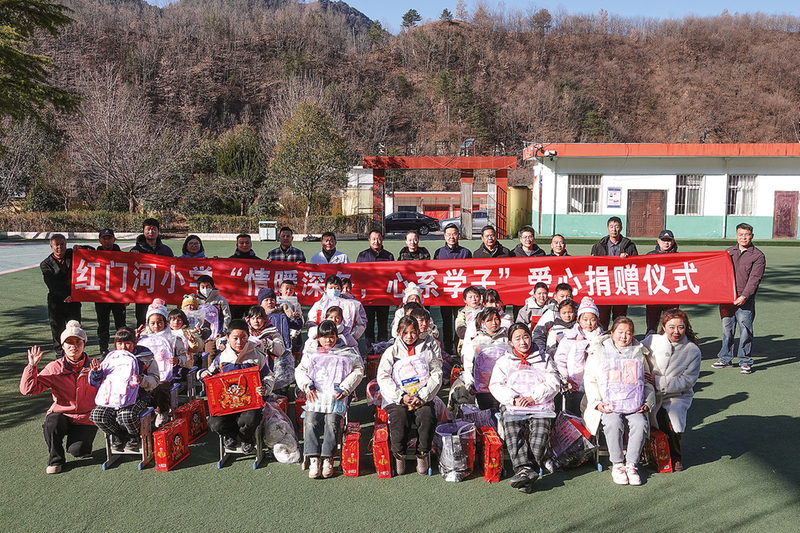 1月13日,共青团商州区委联合市民政局在牧护关镇红门河小学举行“情暖深冬·心系学子”爱心捐赠活动。活动现场,爱心人士为小学生们发放了总价值约1.5万元的爱心大礼包。 (本报记者 胡 蝶 摄)