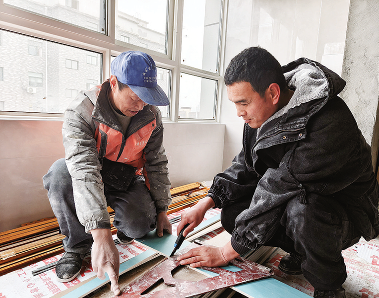 正说着,一个电话打来——有一家装修工地急需人手做吊顶。“年前最后一户了,天气冷缺工人,我去帮帮忙。”袁博挂断电话,利落地穿上外套出了门。量尺寸、裁板材、上扣板……不到一上午,一间房子的吊顶就在袁博和工友的配合下顺利完成。“袁博这人踏实、热心,随叫随到,干活也利索。”工友杨新平这样评价他。