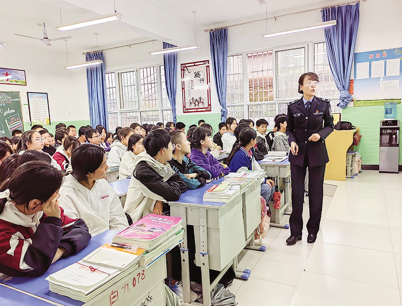 杨柳走进校园,给孩子们普及法律常识、分享所学心理学知识。