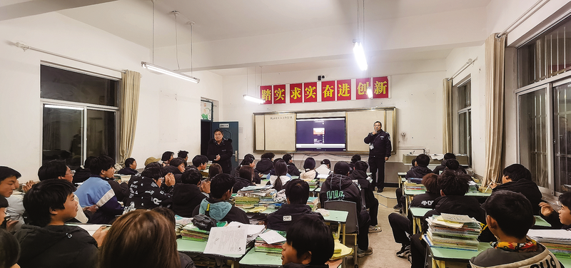 1月15日,洛南县司法局保安司法所工作人员走进保安中学开展了一场“校园安全法治教育课”宣讲活动。通过防范网络诈骗环节的宣讲,传授“不轻信、不透露、不转账”的防骗口诀。向学生讲解校园欺凌的定义、表现形式及严重危害,鼓励学生勇敢对欺凌说不,拒绝做施暴者和旁观者,学会向老师、家长或警方求助。 (本报通讯员 杨开让 摄)