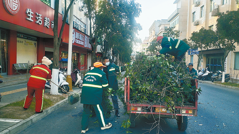 1月12日,丹凤县城管局组织30多名园林绿化所工作人员,计划利用1个月时间,对县城北新街等路段绿化树木进行修剪、整理,扮靓城市环境,以新的面貌迎接春节。 (本报通讯员 樊利仁 摄)
