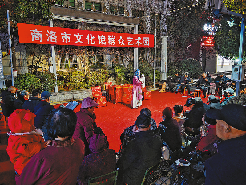 1月18日,市文化馆群众艺术团在市区演出传统秦腔剧目,吸引众多市民驻足欣赏。近年来,市文化馆着力打造“周周有戏看”“天天有戏看”“一人一首成名曲”等常态化惠民品牌,高频次开展文化惠民活动,融合非遗与地方特色,覆盖城乡、贴近群众生活,文化惠民演出已成为城乡居民生活中不可或缺的一部分。 (本报记者 杨 鑫 摄)