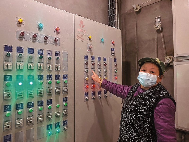 工人石金镯向记者展示环境控制系统的基本操作。1月14日,记者来到丹凤县永胜牧业蛋鸡养殖基地,映入眼帘的不是传统鸡舍的杂乱景象,而是一排排崭新的现代化养鸡设施。1号鸡舍里,4列4层的鸡笼一眼望不到头,工人石金镯在环境控制系统上轻按几下,就将鸡舍内的温度、湿度、通风参数调节至最佳状态。