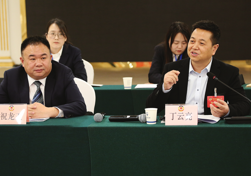 ▷2月3日,工会、共青团、妇联、特邀界列席人员丁云亮围绕学生、教师减负与委员们展开讨论。(本报记者 王孝竹 摄)