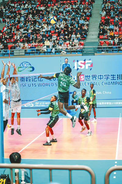 ①2025年U15世界中学生排球锦标赛在商洛举行,来自世界各国的参赛队伍奋勇拼搏。②秦岭记忆·2025中国康养之都气排球超级联赛比赛现场。③2025年U15世界中学生排球锦标赛中,观赛队伍为场上的比赛呐喊喝彩。④国际排联沙滩排球U19世界锦标赛比赛现场。⑤商州群众运动公园是市民运动健身的好去处。