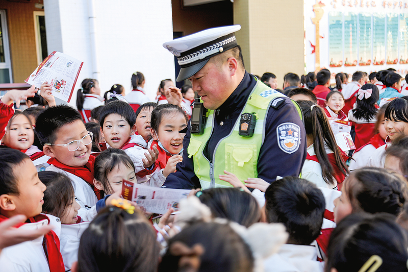 2025年12月2日,商洛市公安局交通警察支队商州大队城区一中队民警走进辖区商洛市小学开展“金盾护苗”交通安全宣传教育活动。
