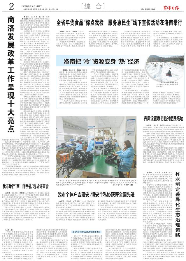 春节期间,丹凤县免费开放城区公共停车位,方便群众出行购物,城区各责任单位将联合行动,针对市容环境突出问题开展集中整治,做好道路清扫、绿化养护、市容秩序维护等工作,以“看得见的变化”擦亮节日名片。丹凤县对临时便民场地实行集中经营、统一管理,各经营者严格按照《2026年春节临时便民市场设置开放及规范管理有关事项通告》要求执行,县市场监管局同步开展节前市场安全专项检查,全面排查整治风险隐患,筑牢节日食品安全防线。