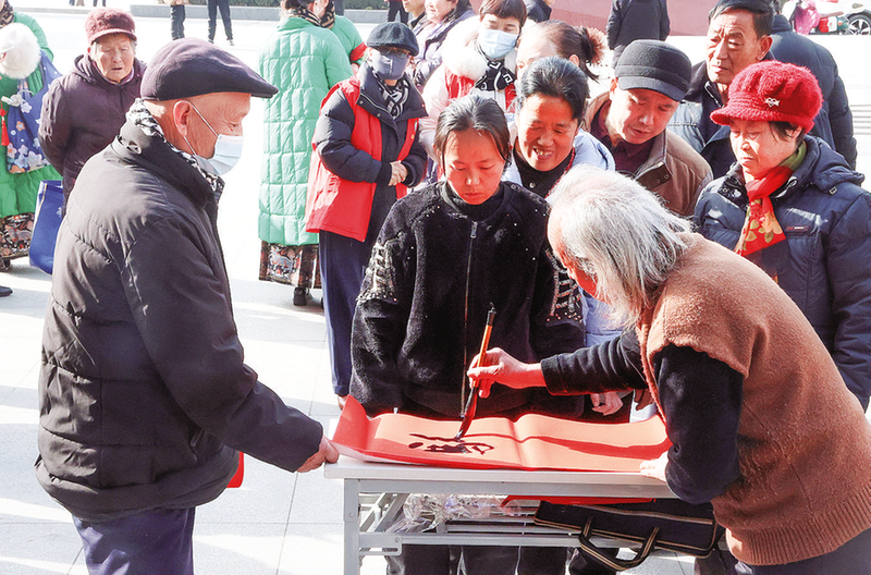 2月5日,市慈善协会在市中心广场举办“喜迎新年 义写春联”活动,为市民免费书写春联。活动现场,书法家们挥毫泼墨,一句句寓意吉祥的新年祝福在笔尖流淌,给即将到来的新春佳节增添了浓浓的喜庆氛围。 (本报记者 杨 康 摄)