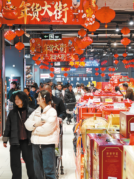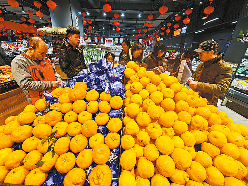 △中心城区各大商超年货品类丰富齐全,市民可自由挑选、随心搭配采购。