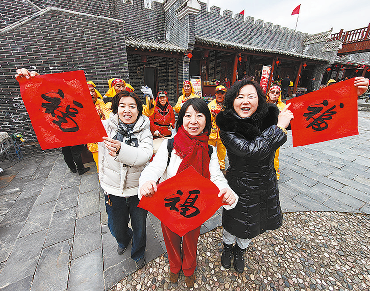 ▷西安游客马丹妮和朋友们专程来商州区体验赶年集。本报记者 杨 鑫