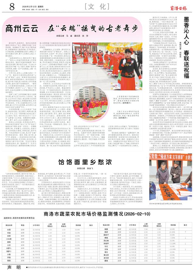 商洛市蔬菜农批市场价格监测情况(2026-02-10)